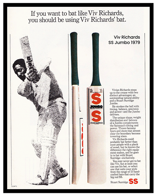 More cricketing greats start hitting hard with SS. The SS Jumbo became the bat of choice for many professional amateur sportsman, including Viv Richards, Graham Gooch, Lance Klusener, Richie Richardson and Mark Taylor.