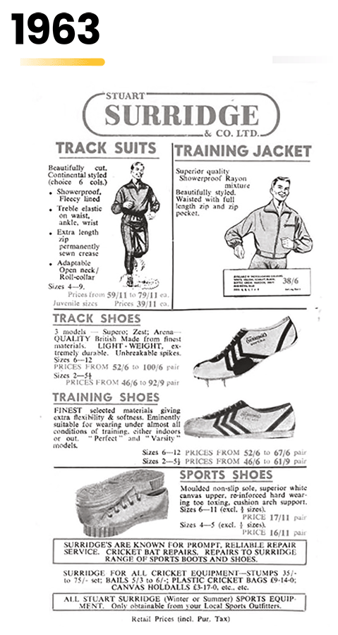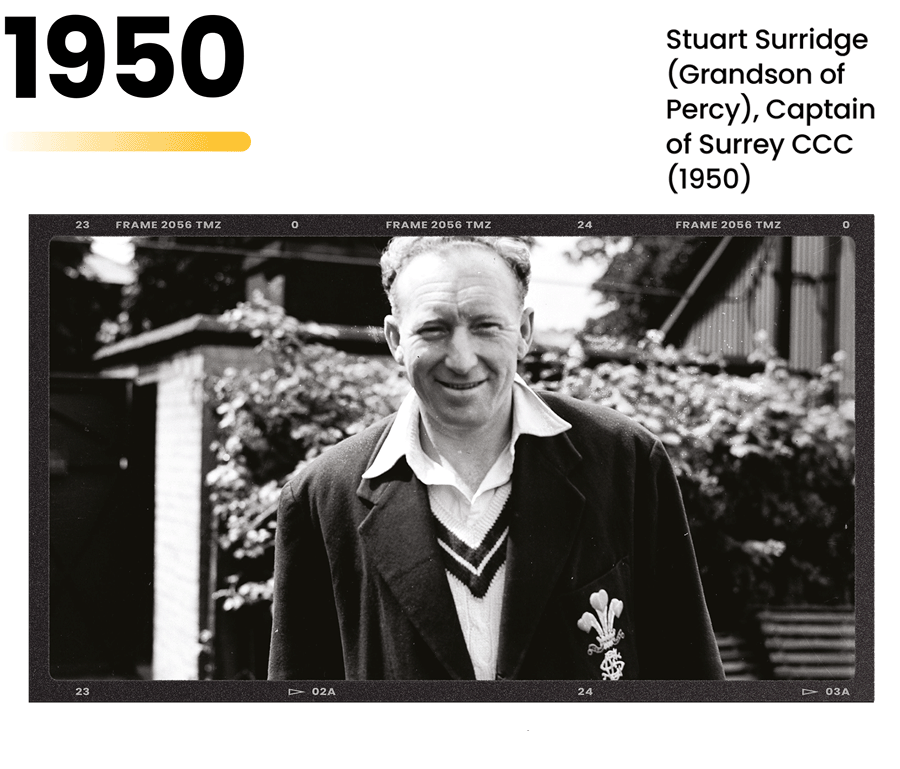 The company began to grow and by the 1950's the brand had been passed on to Percy Surridge's grandson, Stuart Surridge. This saw development begin in other areas of the sporting world, from hockey sticks, tennis rackets and footballs. Stuart Surridge was captain of Surrey CCC and was the most successful Surrey Captain to date.