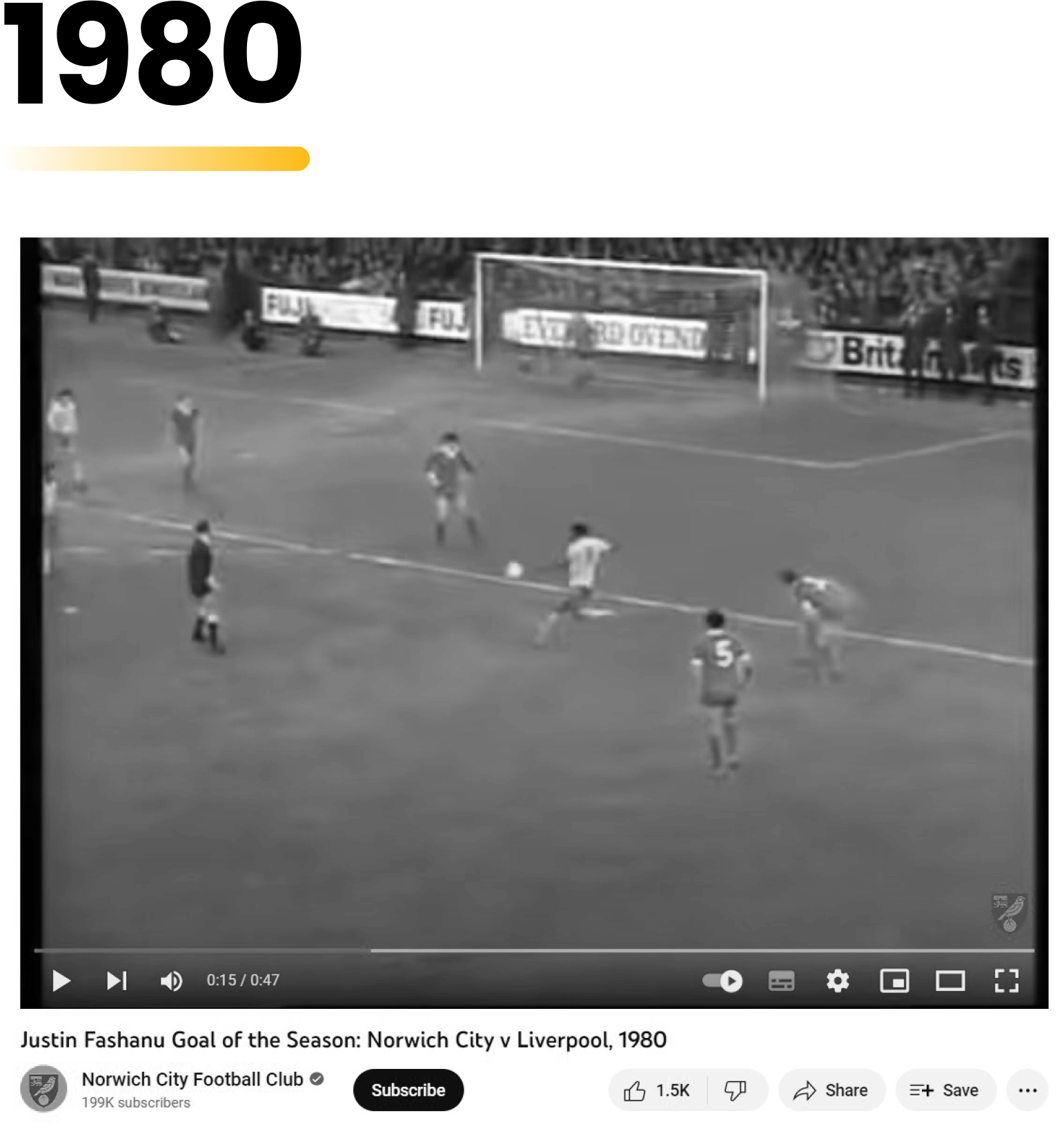 Remember that Goal! 1980 Goal of the season Justin Fashanu of Norwich City versus Liverpool was scored with a Stuart Surridge UFO Ball.