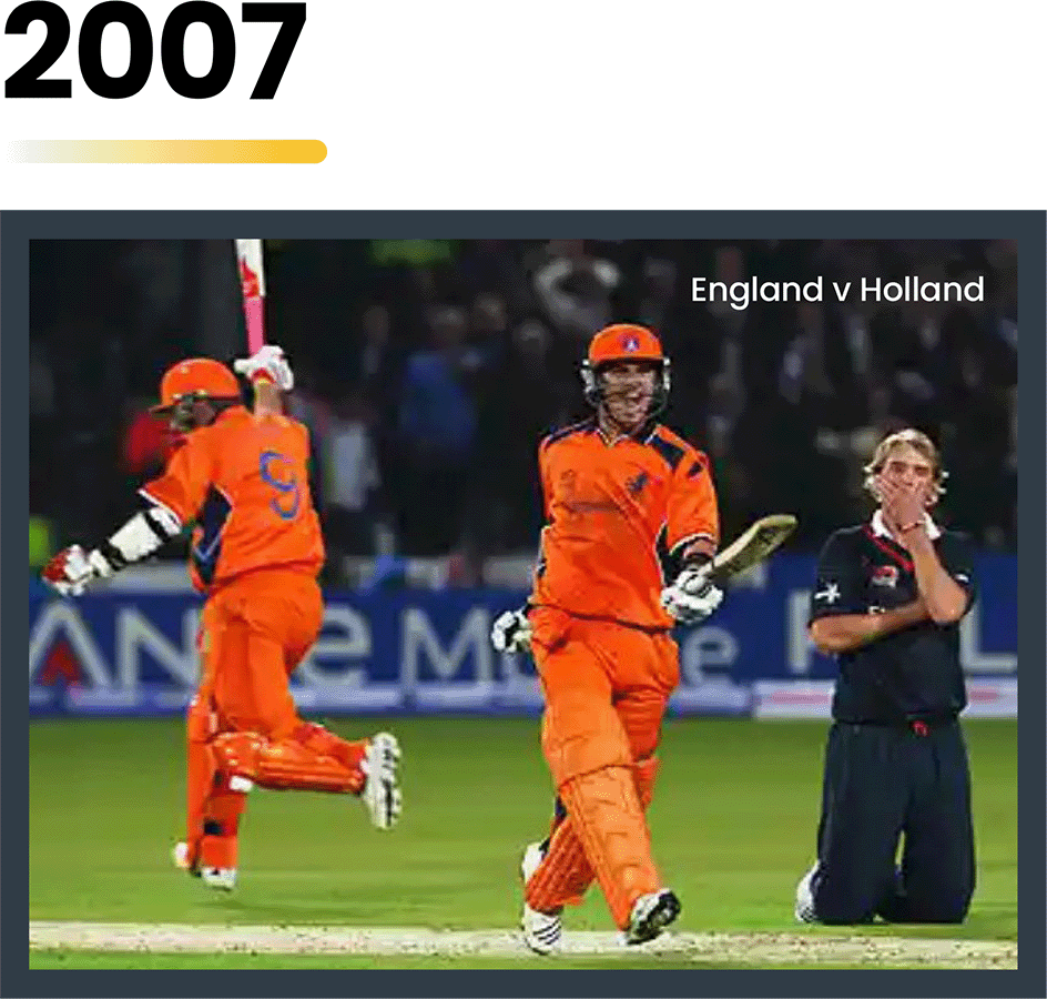 2007 Was also the year of the Cricket World Cup - Surridge was kit supplier to two playing teams, including Holland and Scotland. 2007 also saw us agree a kit manufacturers contract with Bury FC which lasted 8 seasons.