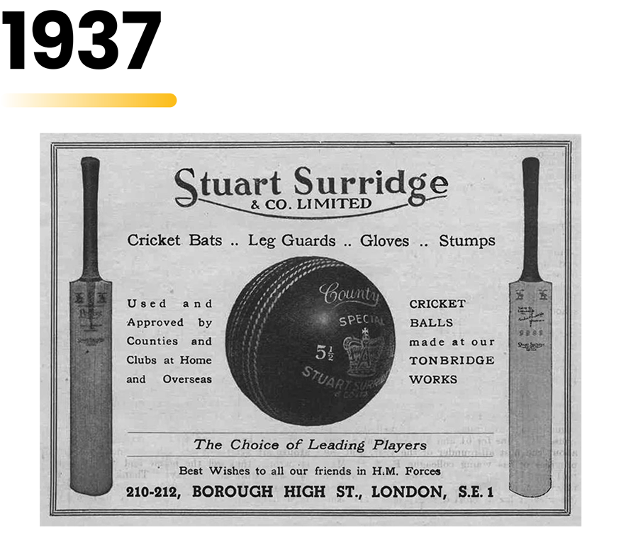 Stuart Surridge was making strategic waves and increased their exposure. A successful newspaper advert from 1937 advertising cricket equipment.